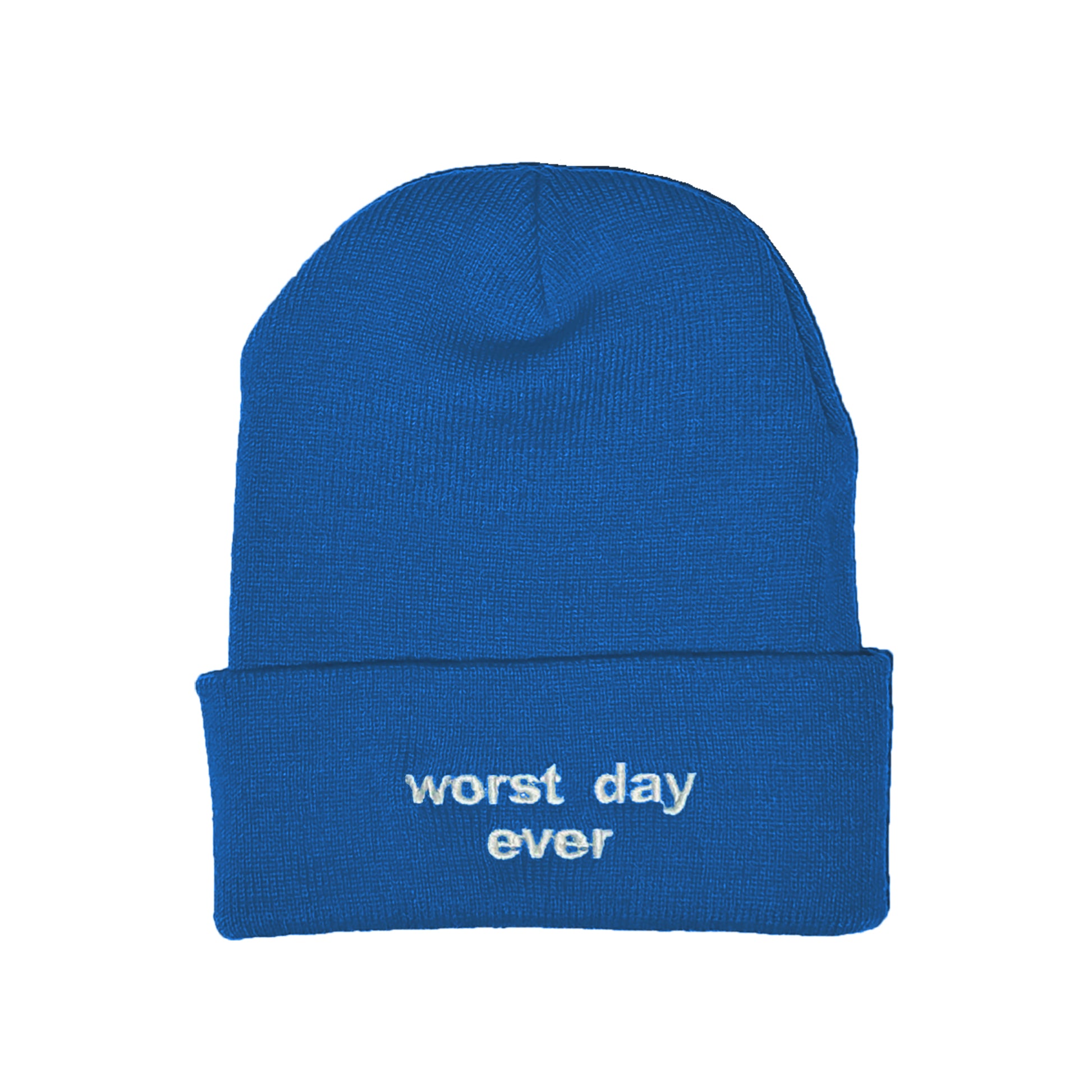Front and Back Embroidered "best day ever" and "worst day ever" design on a 100% acrylic high-quality cuffed beanie.
